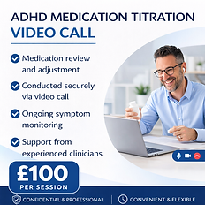 this appointment is for Review the current medication, dosage, and timing. Monitor symptom response, including attention, hyperactivity, impulsivity, and emotional regulation. Assess for potential side effects and tolerability. Record physical observations such as blood pressure, pulse, and weight. Review any relevant medical history, co-existing conditions, and concurrent medication use. Provide psychoeducation around medication, including expected benefits, possible side effects, and safe use. Adjust the medication dose or formulation as clinically indicated, in line with national guidelines. Agree a clear follow-up plan, including ongoing monitoring and communication with the wider healthcare team where appropriate. The aim of titration is to identify the most effective medication and dosage for the individual, balancing symptom improvement with minimal side effects. This process is collaborative, with the patient actively involved in decision-making throughout. Once medication has been titrated and maintained at an appropriate therapeutic dose, I will arrange for shared care to be transferred back to the patient’s GP for ongoing prescribing and monitoring, ensuring continuity of care within primary services.